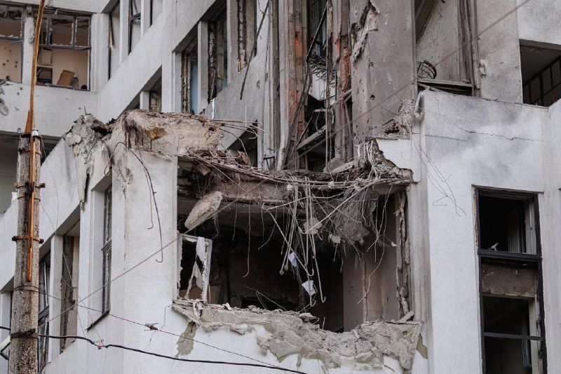Олег Синегубов отметил, что сейчас идет оперативный ремонт: рабочие зашивают окна и восстанавливают коммуникации.