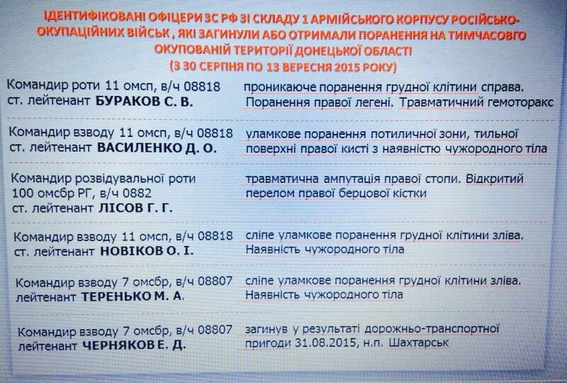 По его словам, информация касается россиян, погибших во время ведения боевых действий, и входили в состав 1 и 2 армейских корпусов российских оккупационных войск.