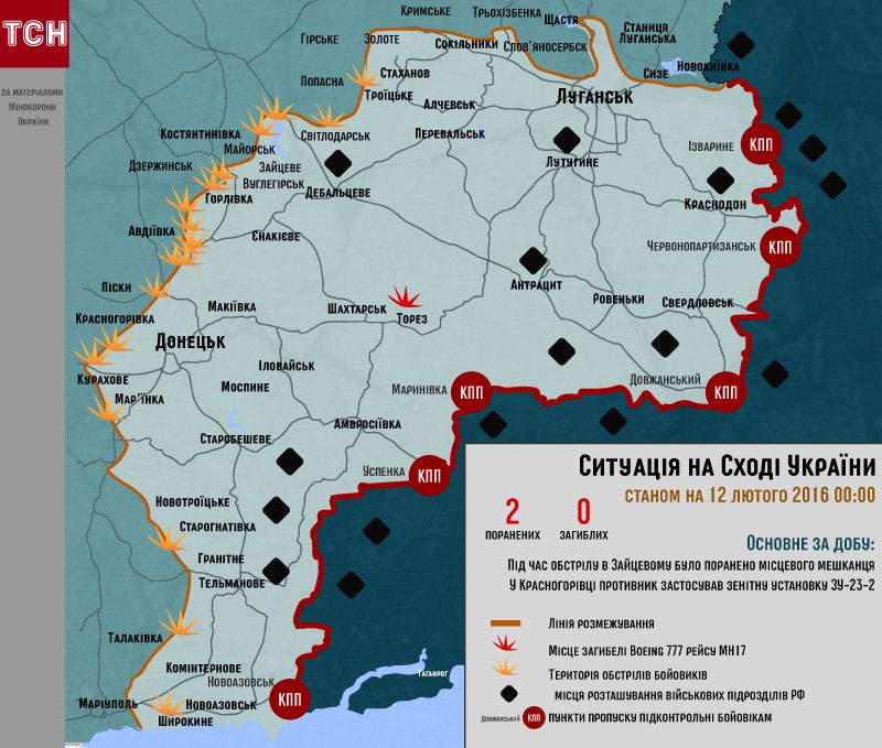 Ситуация в зоне АТО по состоянию на 12 февраля / © ТСН.ua