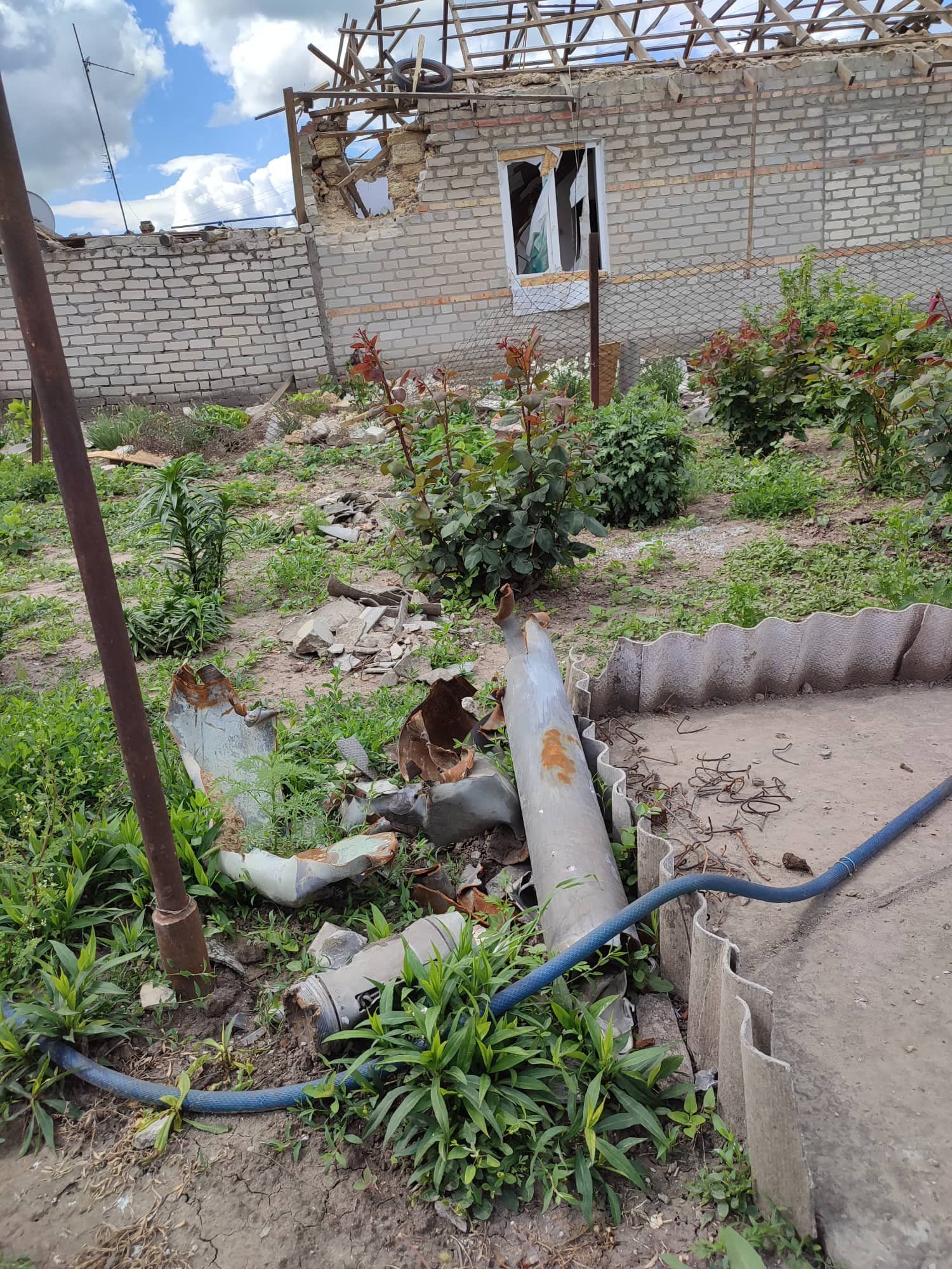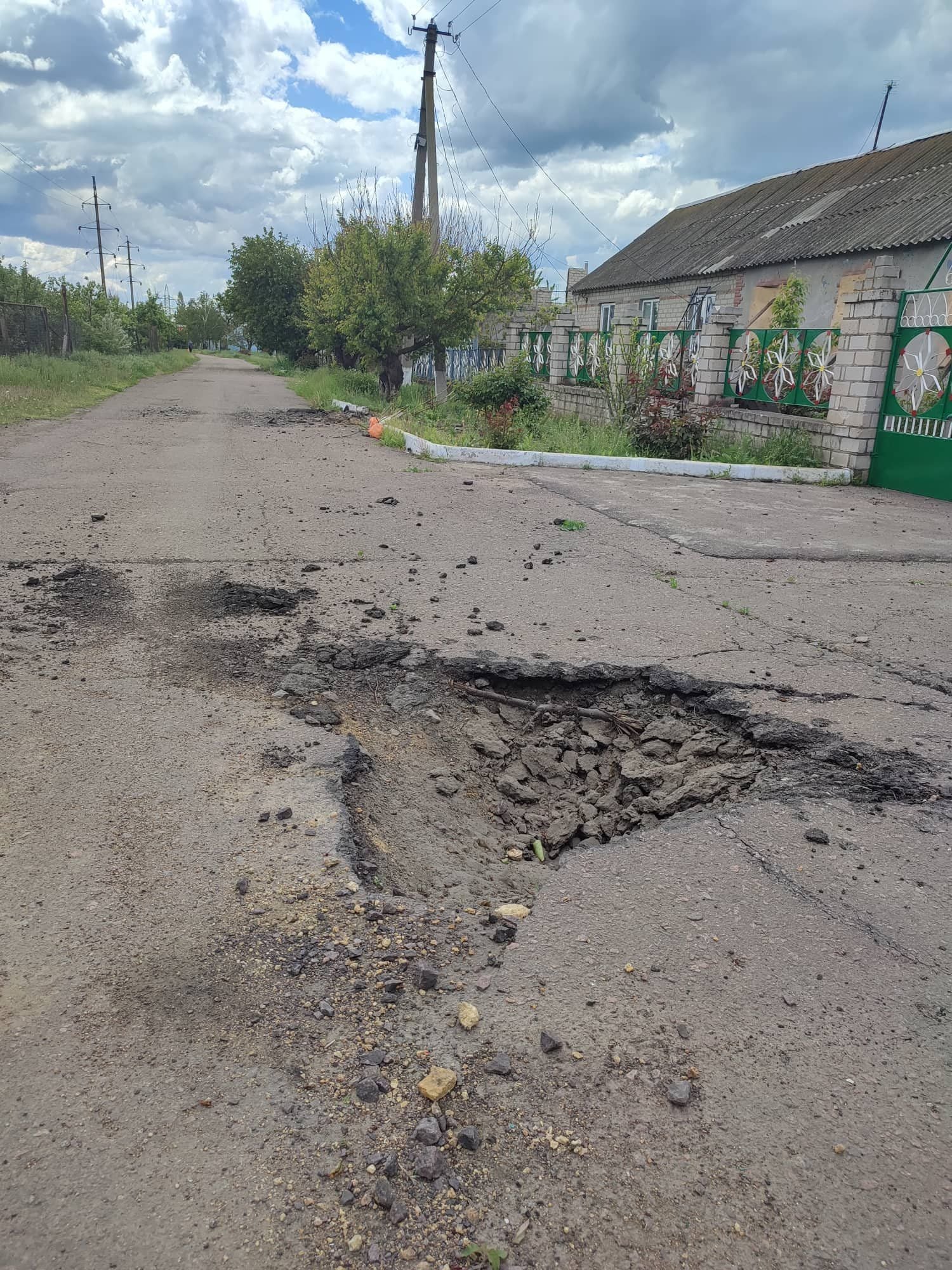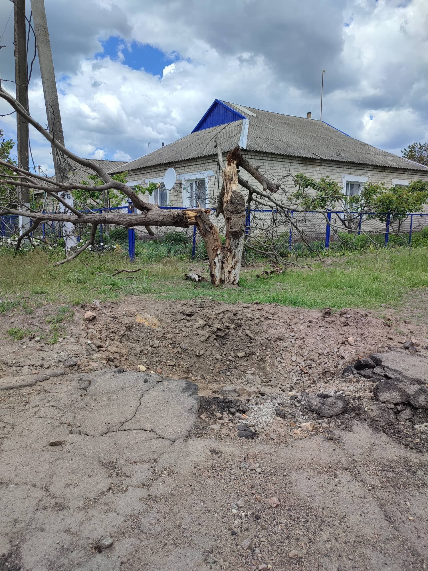 На фотографиях видны разрушенные дома и дворы жителей села с воронками от ракет, поломанные деревья и даже обломки ракет.