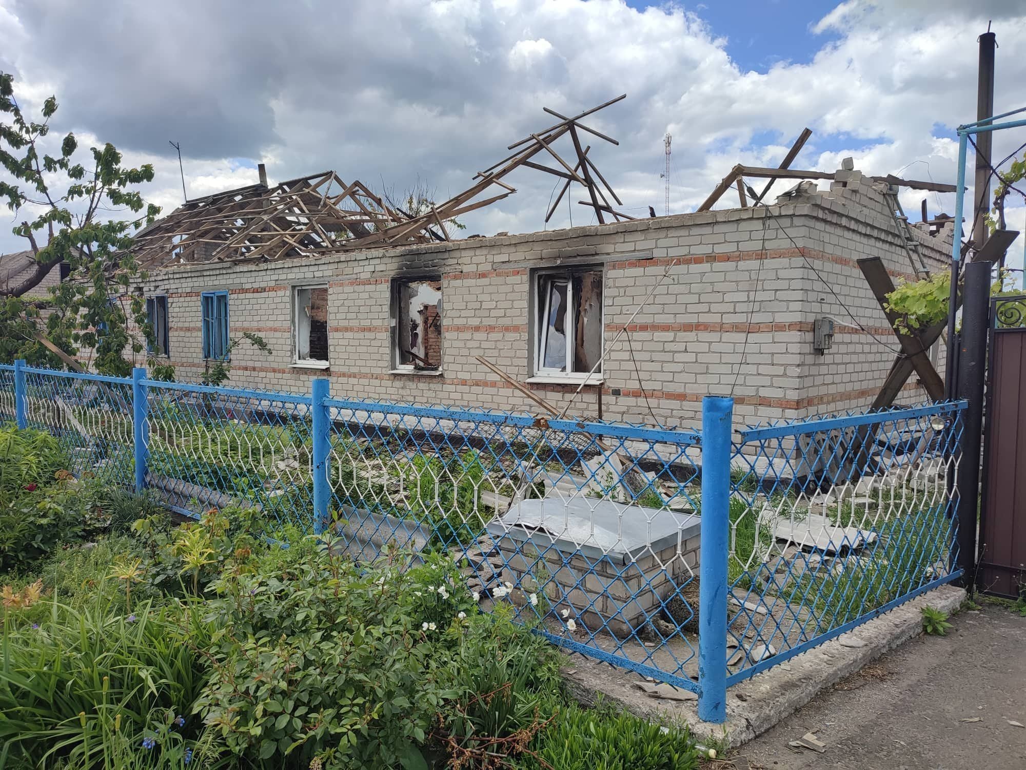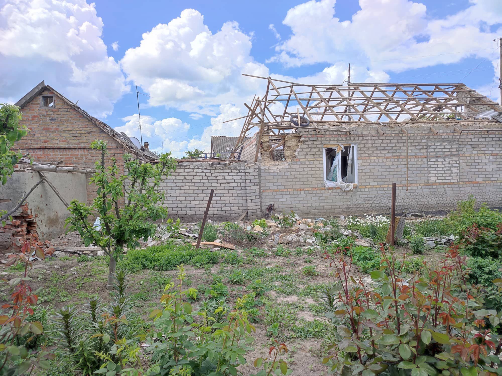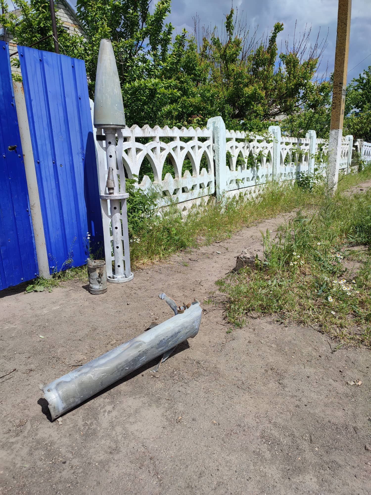 На фотографиях видны разрушенные дома и дворы жителей села с воронками от ракет, поломанные деревья и даже обломки ракет.