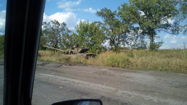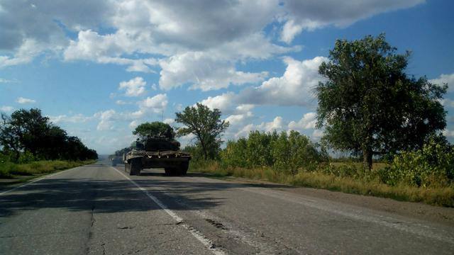 Неподалеку от Луганска на дороге между поселками Придорожное и Новоанновка очевидцы заметили российские новейшие танки Т-90А.