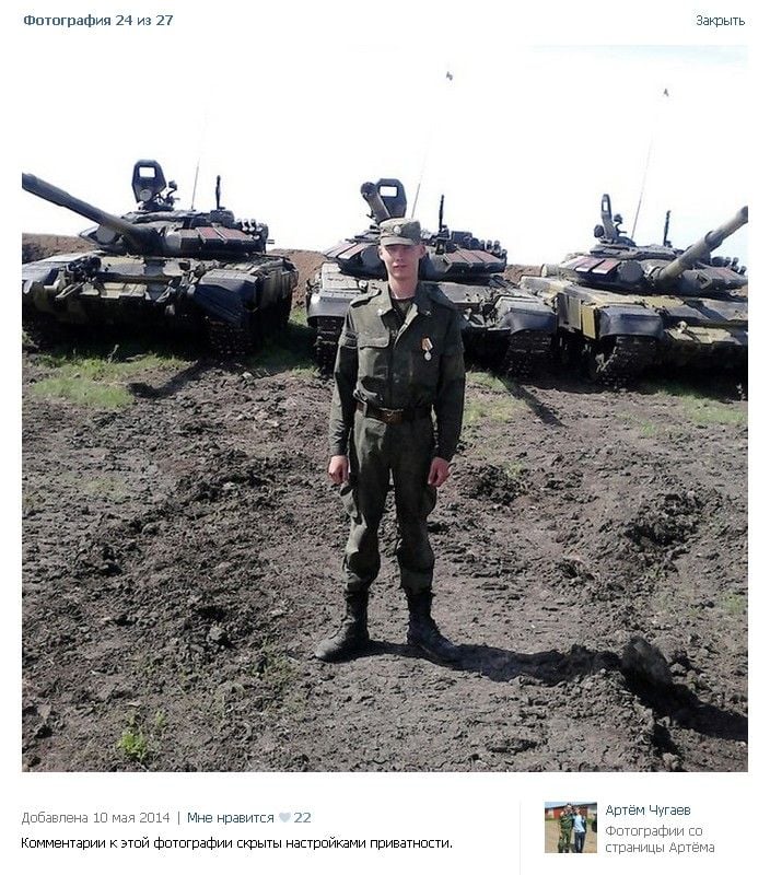 "Напомним, что 22 сентября 2014 года российский пропагандистский канал ANNA NEWS разместил видео "Донецк, Старобешево. Уничтоженная бронетехника украинской армии", в котором пытался выдать уничтоженные российские танки Т-72 за украинские. Возвратом к данной теме послужила фотография, обнаруженная на странице российского военного преступника, контрактника подразделения ПВО из состава 21-й отдельной мотострелковой бригады (в/ч 12128-же Тоцкое-2, Оренбургская область, ЦВО) Дениса Панченко", - пишет автор расследования.