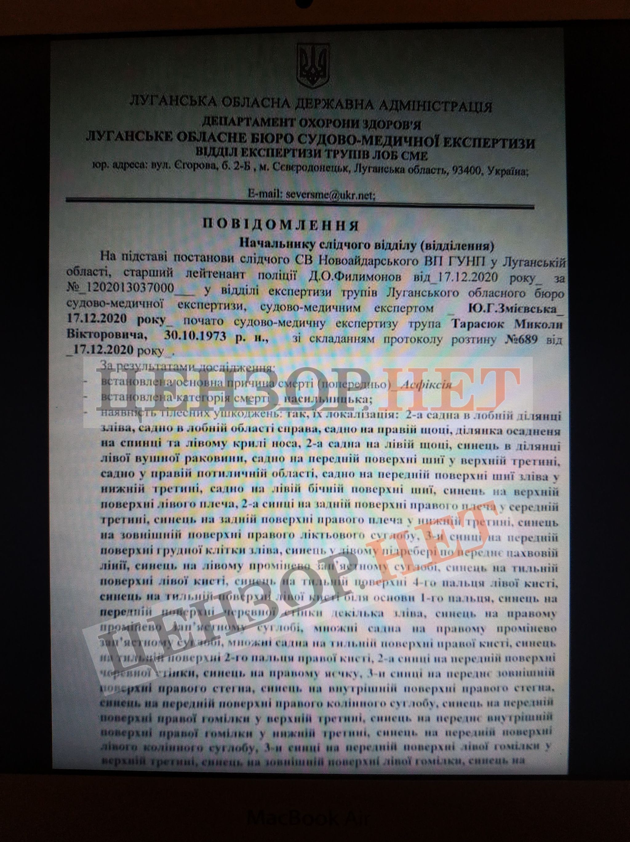 Военнослужащего ВСУ, тело которого вооруженные формирования РФ в прошедшие сутки вернули Украине, задушили. Ранее в ТКГ заявляли, что боец умер от алкогольной или наркотической интоксикации.