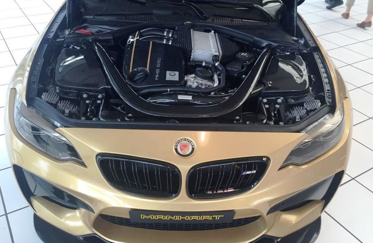 Купе BMW M2 Coupe после всех доработок получило новое название Manhart MH2 630. Специалисты немецкого ателье вместо стокового 3,0-литрового 6-цилиндрового двигателя N55, который в базе выдает 370 (365) л.с., в моторный отсек установили модернизированный силовой агрегат с индексом S55, которым оснащаются "заряженные" модели BMW M3/M4.