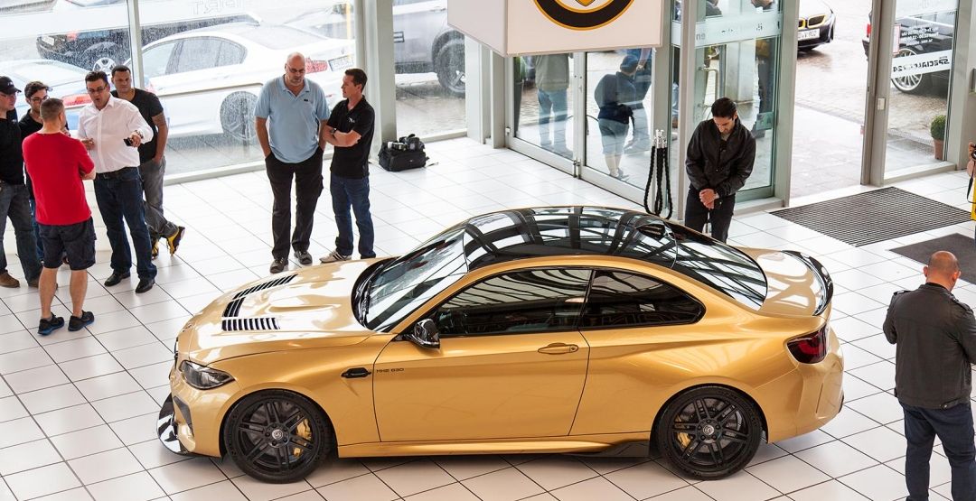 Также BMW Manhart MH2 630 получило уникальную "золотую" окраску кузова и набор 19-дюймовых литых дисков особого дизайна. Плюс ко всему, новинка оснащается модифицированным аэродинамическим обвесом из углеродного волокна.