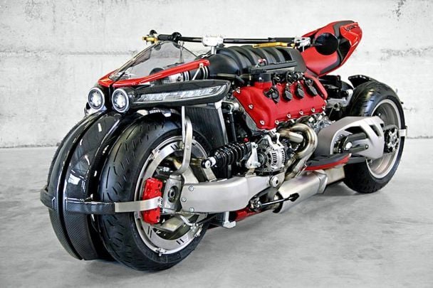 Аэробайк был создан на базе четырехколесной культовой модели Lazareth LM-847, которая была оборудована 470-сильным мотором Maserati. Мотоцикл стал невероятно известным благодаря необычному дизайну.