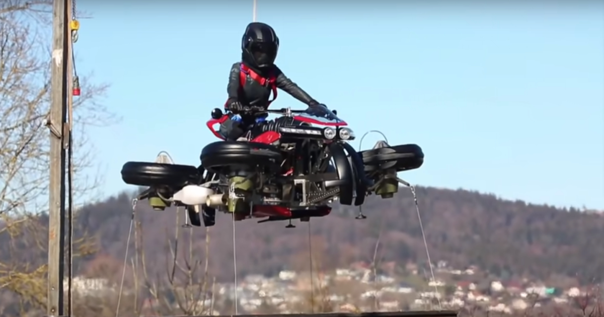 Французы из Lazareth создали прототип летающего мотоцикла Moto Volante и показали первые испытания на видео.