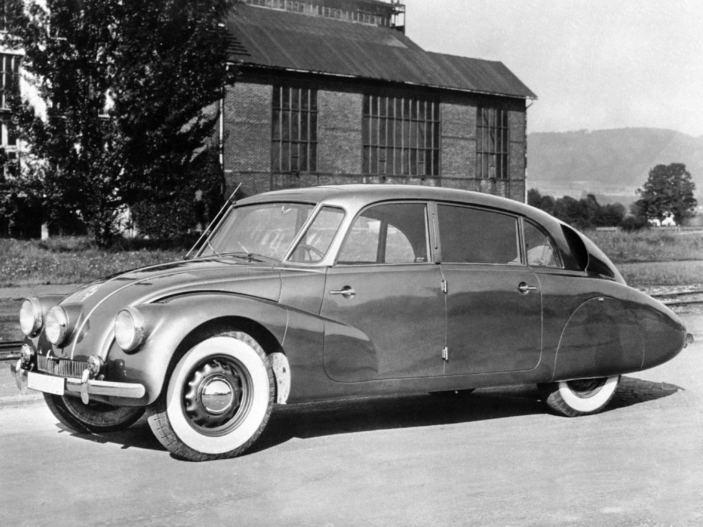 Гениальный чешский инженер Ганс Ледвинка с 30-х годов прошлого века начал эксперименты над автомобилем с задним расположением двигателя воздушного охлаждения. С первых же прототипов эти машины получили крайне необычные кузова обтекаемой аэродинамической формы с "жабрами"-воздухозаборниками по бокам и на крыше.