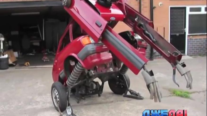 Хетейн Патель за несколько дней превратил старушку Fiesta на робота. Машина лишилась крыши и колес. Зато отрастила руки и ноги.