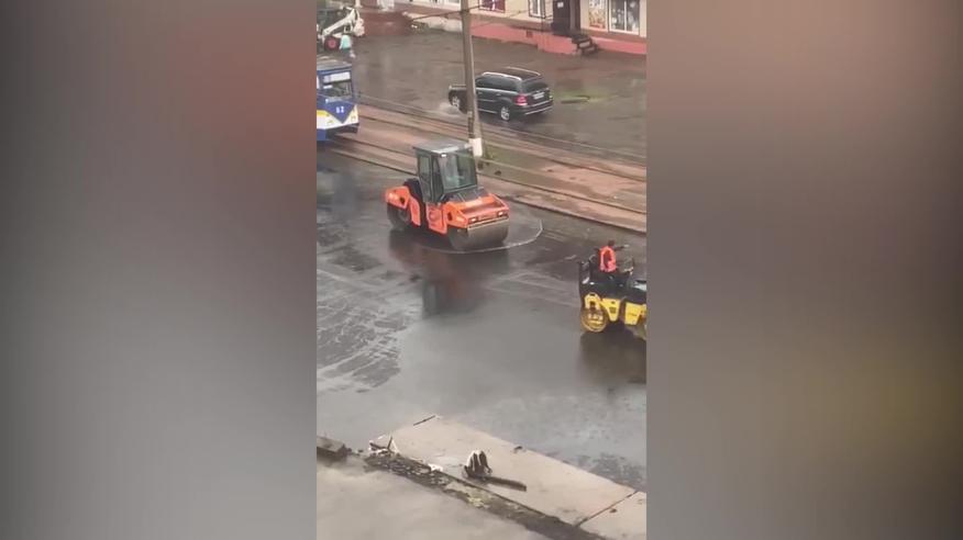 ТСН Авто Видео Дата публикации 13:14, 16.07.20 Категория Видео Количество просмотров 519 В Конотопе асфальт укладывают в лужи В Конотопе Сумской области коммунальные службы укладывают дорожный асфальт в дождь просто в луже.