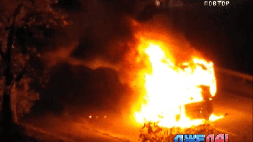 Видео горящего грузовика в интернет выложил один из пользователей. На ролике видно, как пожарных пытаются загасить пламя. В общем лесовоз пылал на дороге около получаса.