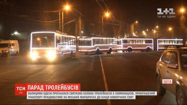 По улицам Одессы проехалась праздничная колонна троллейбусов с иллюминацией