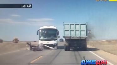 Женщина чудом выжила после того, как на нее наехал грузовик. Бензовоз и легковушка остановились, чтобы пропустить пешехода, как вдруг в них влетает еще один грузовик. Страшная авария произошла и в Поднебесной. Экипаж скутера пошел в лобовую атаку на автобус. Между тем в России прапорщик патрульной полиции своей машиной заступил дорогу автоугонщику.