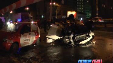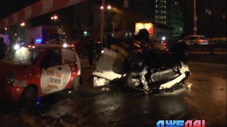 На проспекте Победы в бетонный бордюр, разделяющий полосы движения, влетел "экипаж" белоснежной Mazda. После столкновения кроссовер поднялся в воздух и приземлился на крышу, задев Matiz, который вез пиццу. Но уже через полчаса владелец Mazda устроил настоящее представление.