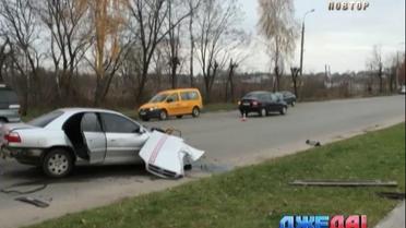 Такие последствия ДТП с участием горе-гонщика. Владелец «немца» неплохо разогнался, но не справился с управлением и врезался в стелу одной из заправок. Удар был такой силы, что у легковушки оторвался капот. «Скорой», которая прибыла на место аварии, пришлось экстренно госпитализировать водителя и двух его пассажиров.