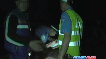 Активисты и дорожные инспектора задержали совершенно пьяную компанию. На экспертизу водитель ехать отказался и пытался дать гаишнику взятку. Те отказались, а нарушитель решил выместить злобу на съемочной группе.