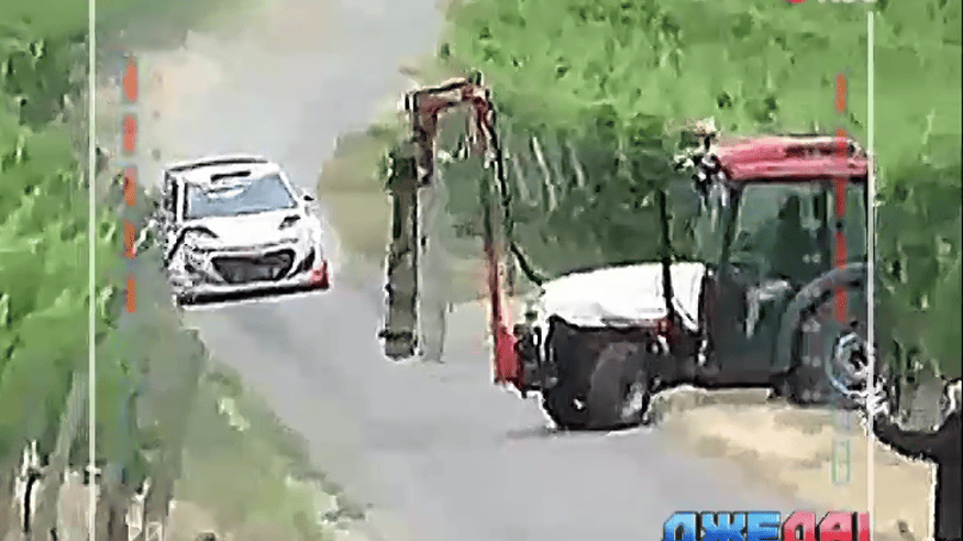 В Германии во время ралли гоночный автомобиль почти влетел в трактор