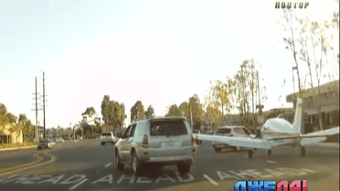 В калифорнийских водителей волосы встали дыбом, когда в правой полосе среди трафика они увидели настоящий самолет. Оказалось, что легкомоторник не дотянул до аэродрома города Ирвайн лишь несколько километров. Пилоту пришлось выполнять аварийную посадку прямо на дорогу.