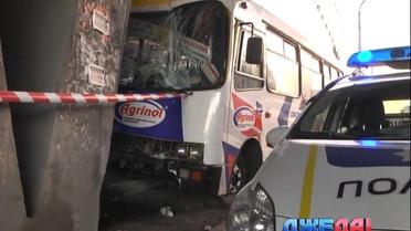 В столице возле метро "Шулявская" в час пик в аварию попала забитая пассажирами маршрутка. Водитель не справился с управлением и врезался в опору путепровода. В больницу попали три человека: два пассажира маршрутки и человек, который ждал на остановке.