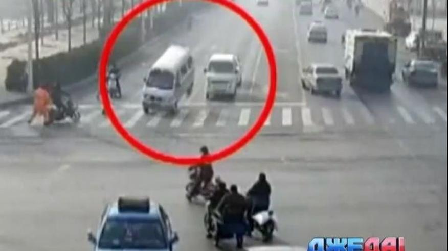 Со стороны это выглядит, будто какие-то мистические силы подбросили два авто. А это лишь небрежность коммунальщиков в городе Синтай. Они плохо закрепили электропровод, и тот упал на дорогу. Накрутив кабель на колеса, две маршрутки и легковушка взлетели на нем в небо.