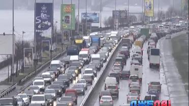 На столичных улицах образовались пробки и тянучки, в которых не обошлось и без аварий. Снег, который сыпал с самого утра, быстро таял, поэтому не успевал покрывать белым войлоком столичные дороги. Так на Набережном шоссе столкнулись три легковушки.