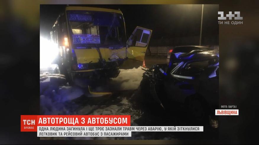 В результате столкновения легковушки с автобусом на выезде из Львова погиб один человек