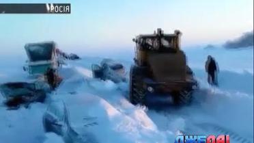 В России из-за метели тысячи машин остановились прямо на заснеженной трассе