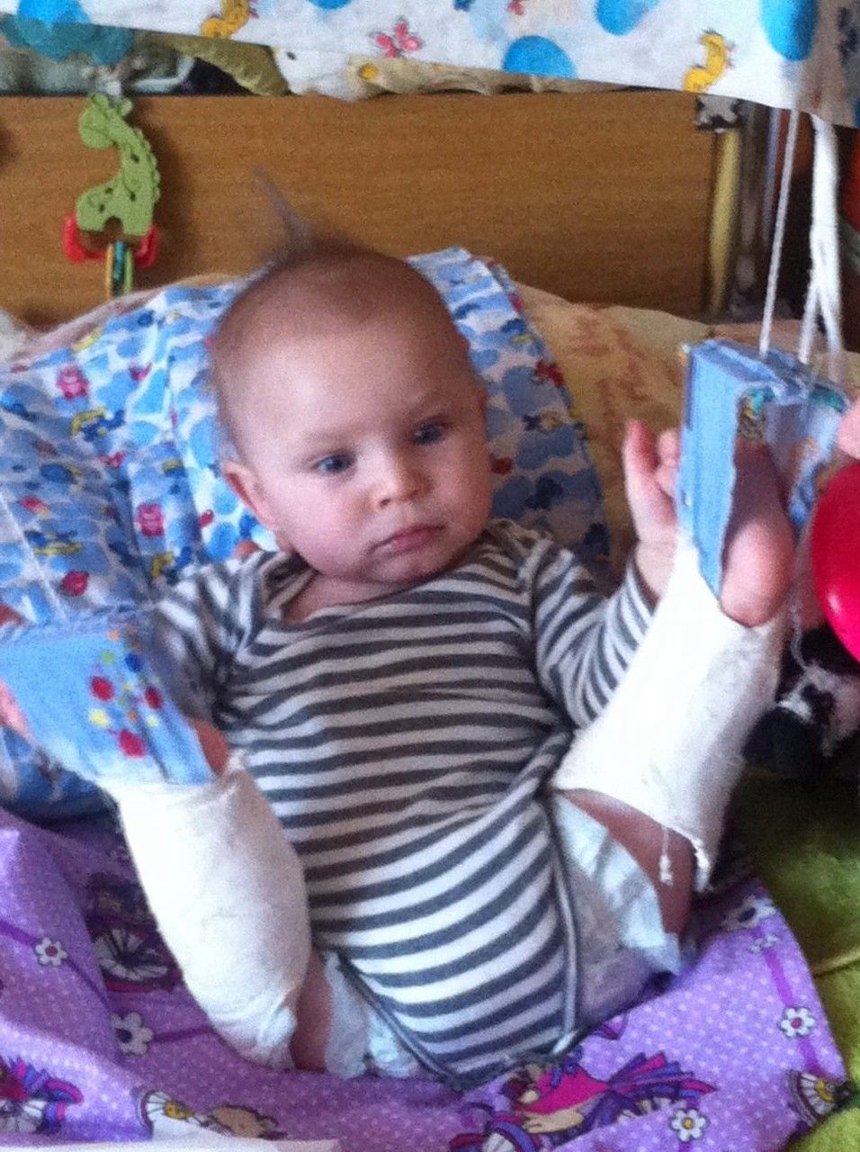 Войтович Захар в свои 1,6 года еще не стоит на ножках, из-за врожденного порока - укорочение обеих бедренных костей и отсутствие тазобедренных суставов и искривление в поясничном отделе.
