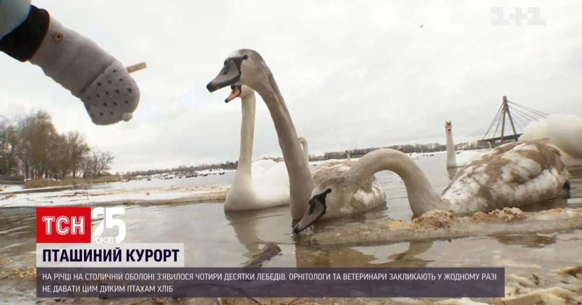 Красивые и дикие: четыре десятка лебедей появились на реке на столичной Оболони. Киевляне пытаются подкармливать птиц. Орнитологи и ветеринары – призывают ни в коем случае не давать лебедям хлеб. Что и когда можно приносить и почему лучше не подпускать близко детей к этим пернатым, — говорилось в сюжете ТСН.19:30 22 января.