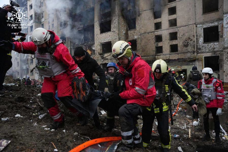 Утренний Киев содрогался от мощных взрывов, а небо затянуло дымом от пожаров. В городе есть разрушение жилой застройки, зафиксированы повреждения инфраструктуры. Особенно страшны последствия в Соломенском районе, где российская ракета попала в многоэтажку.