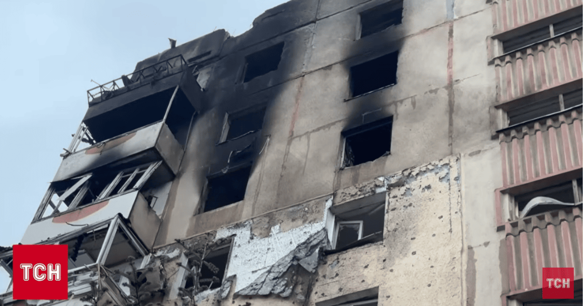 В одном из спальных районов вражеский беспилотник влетел прямо в жилую девятиэтажку. Несколько квартир выгорели дотла, во всем доме не осталось ни одного целого окна. Жительница дома Нина вспоминает момент взрыва с ужасом — ее муж получил осколочные ранения.