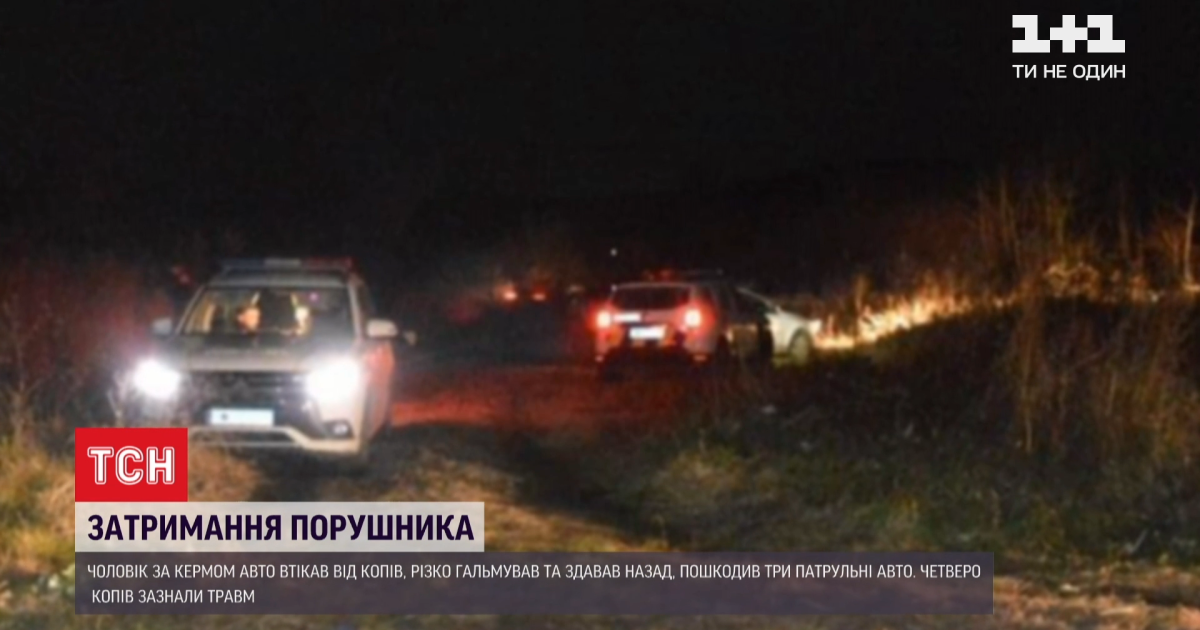 Во Львовской области правоохранители задержали водителя, который нарушил правила дорожного движения, но по требованию копов не остановился. Во время погони беглец резко тормозил и сдавал назад и протаранил три служебных автомобиля. Четверо ехавших в них полицейских получили травмы.