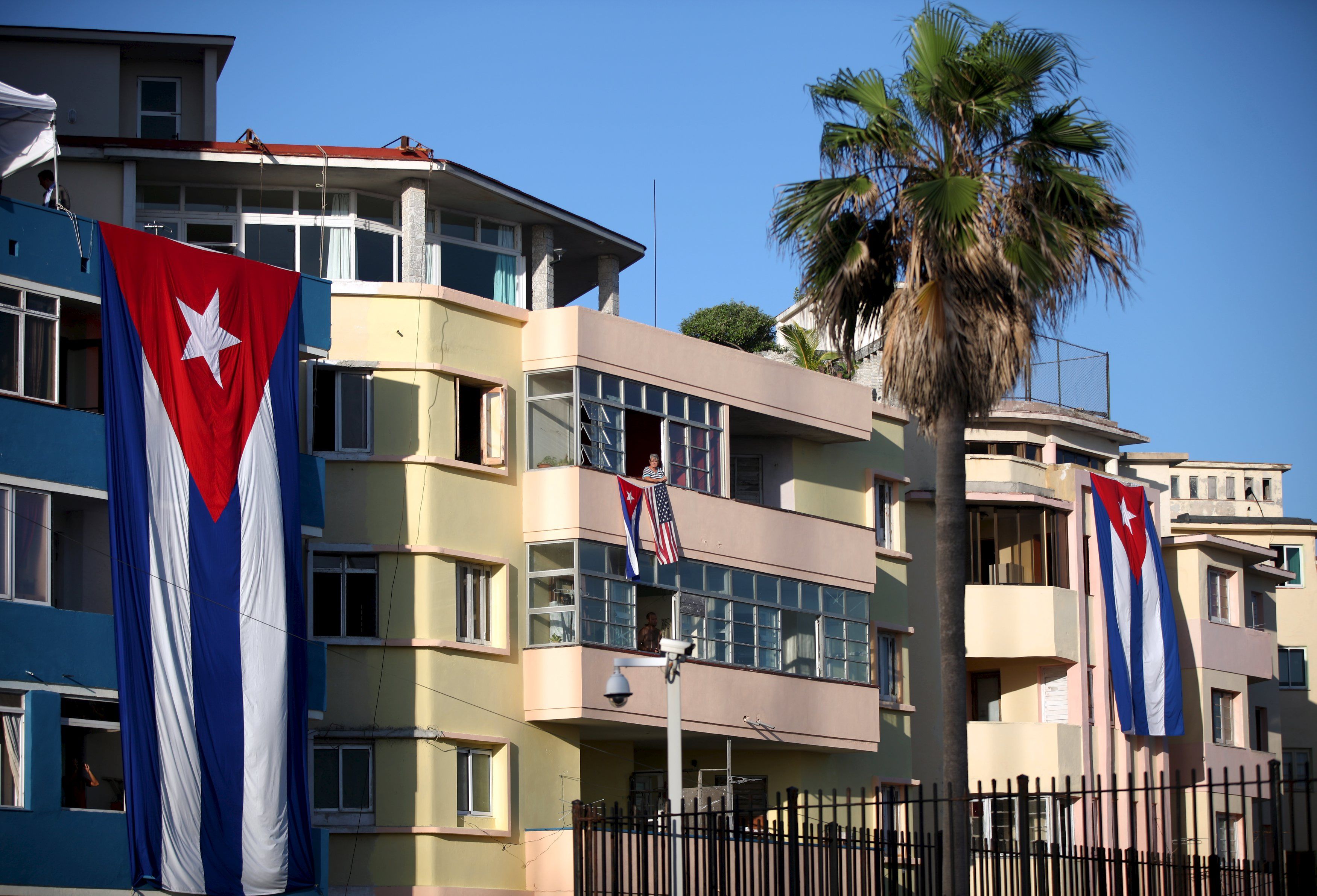 Кубинцы, которые живут напротив американского посольства, вывесили флаги. / © Reuters