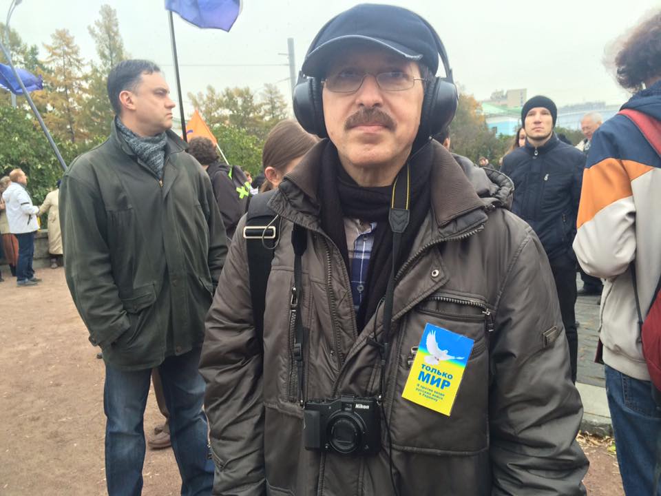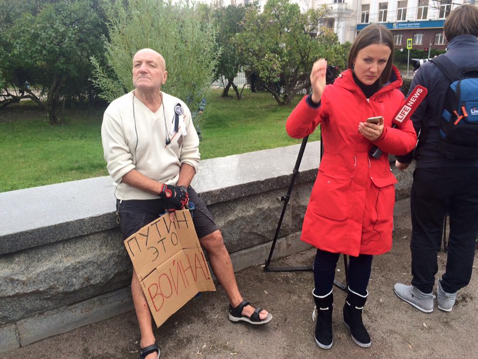 Антивоенный фитинг в Москве (фото из Facebook Романа Цимбалюка)