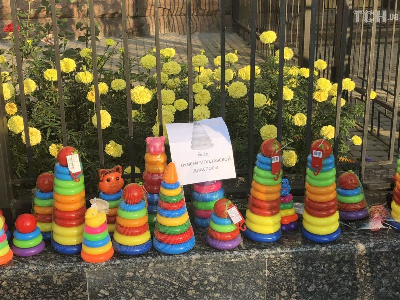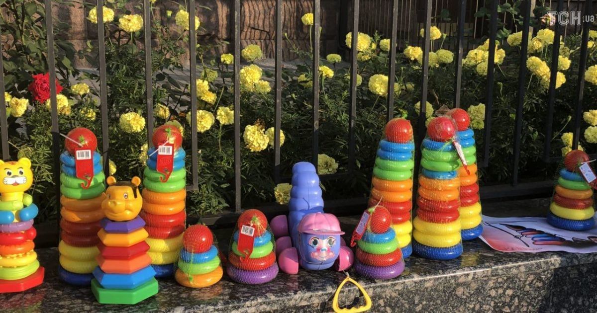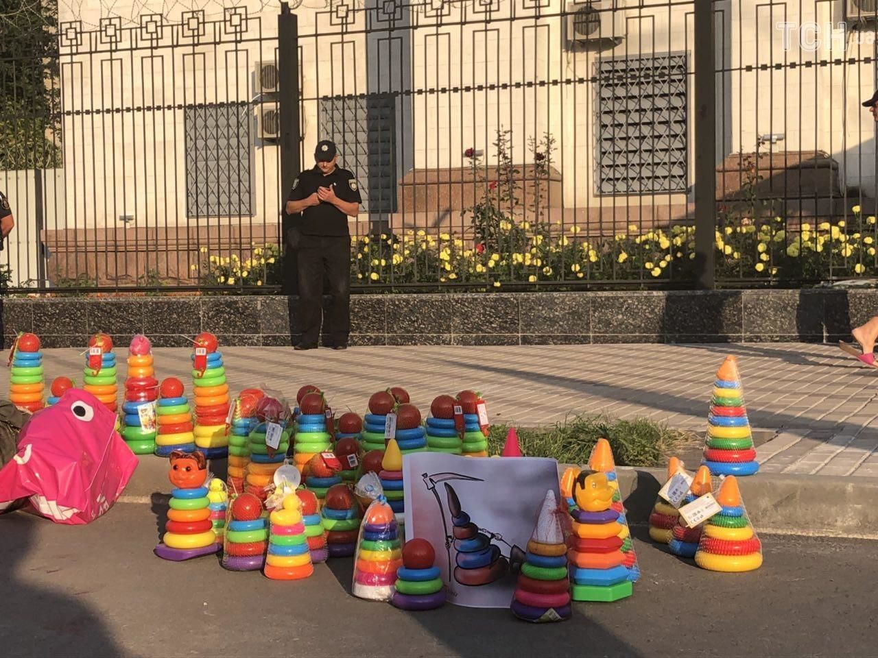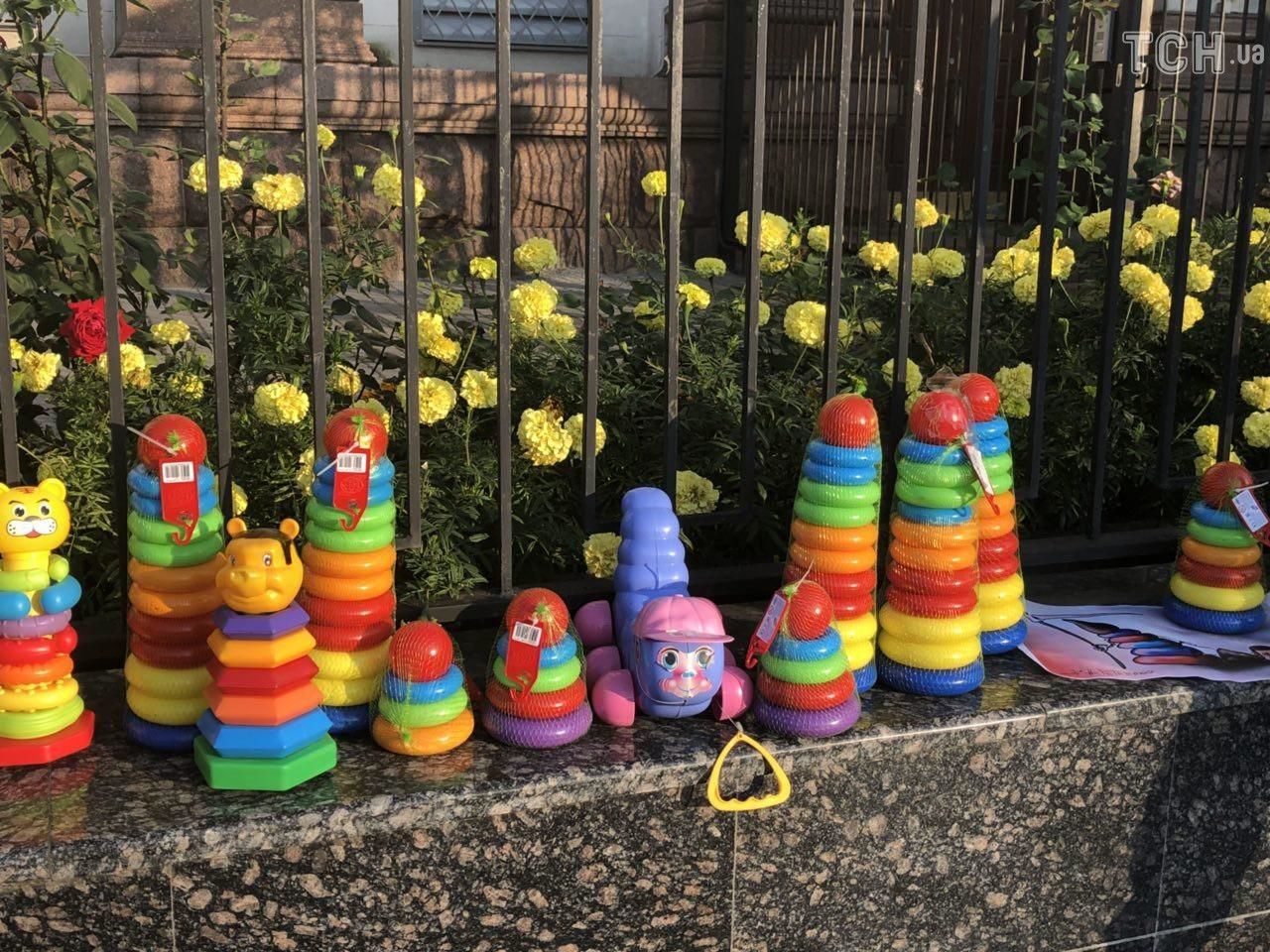 Как передает корреспондент ТСН.ua, участники акции принесли к дипведомству игрушечные пирамидки – именно такой подарок когда-то певец сделал онкобольному мальчику. Этот подарок в свое время вызвал многочисленные возмущения в его неуместности.