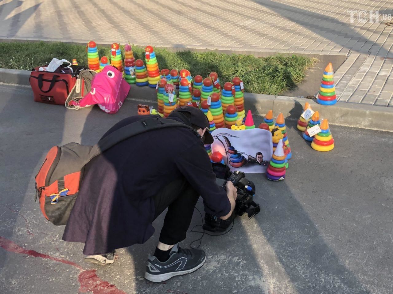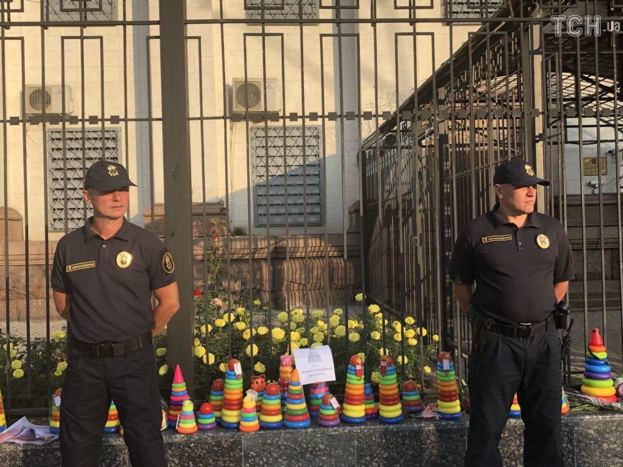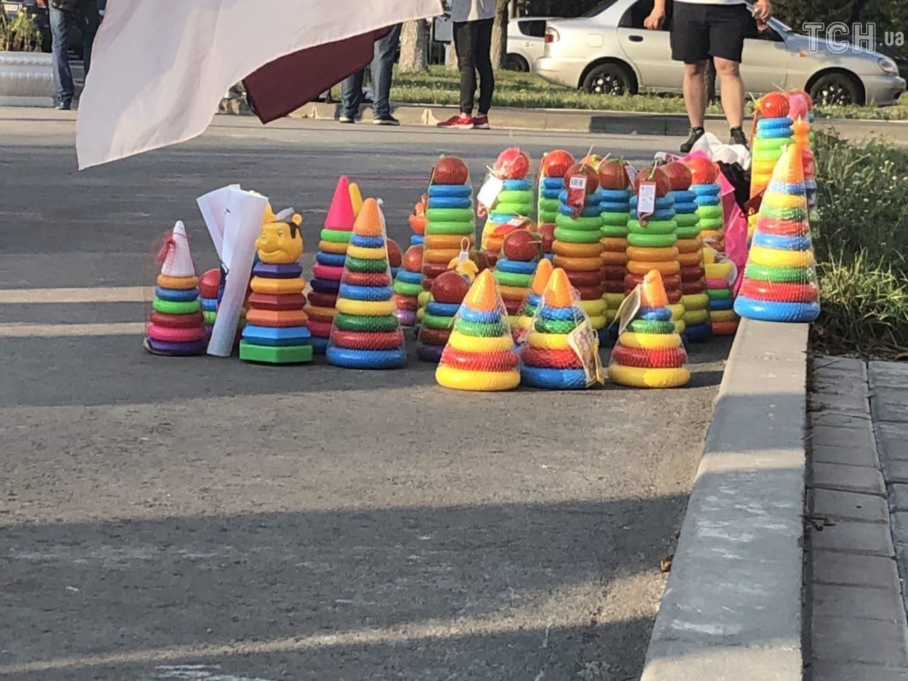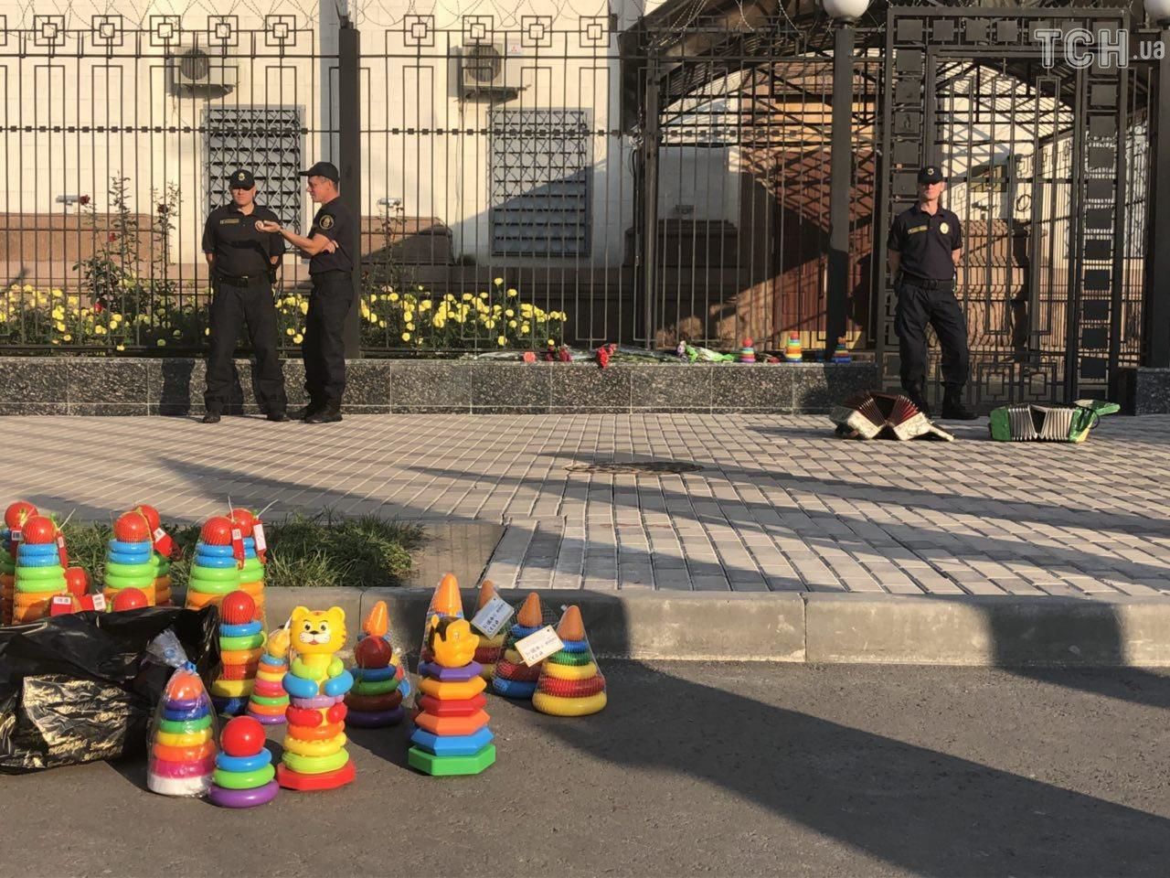 Как передает корреспондент ТСН.ua, участники акции принесли к дипведомству игрушечные пирамидки – именно такой подарок когда-то певец сделал онкобольному мальчику. Этот подарок в свое время вызвал многочисленные возмущения в его неуместности.
