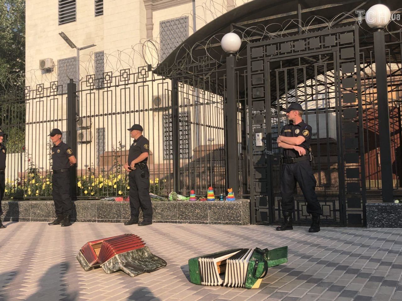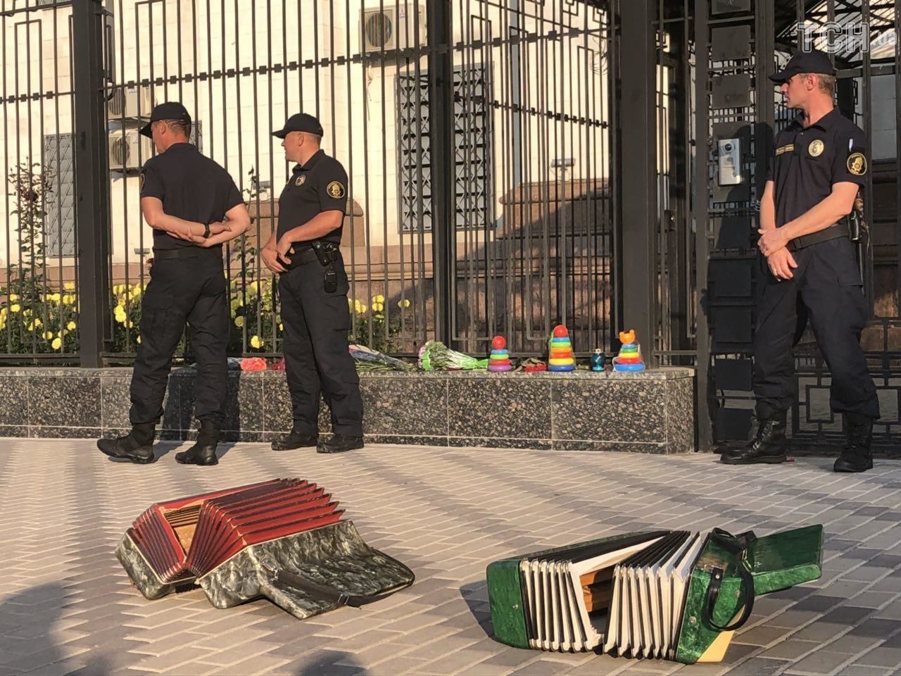 Пирамидки и порванные баяны: под посольством РФ посвятили акцию Кобзону, который умер накануне