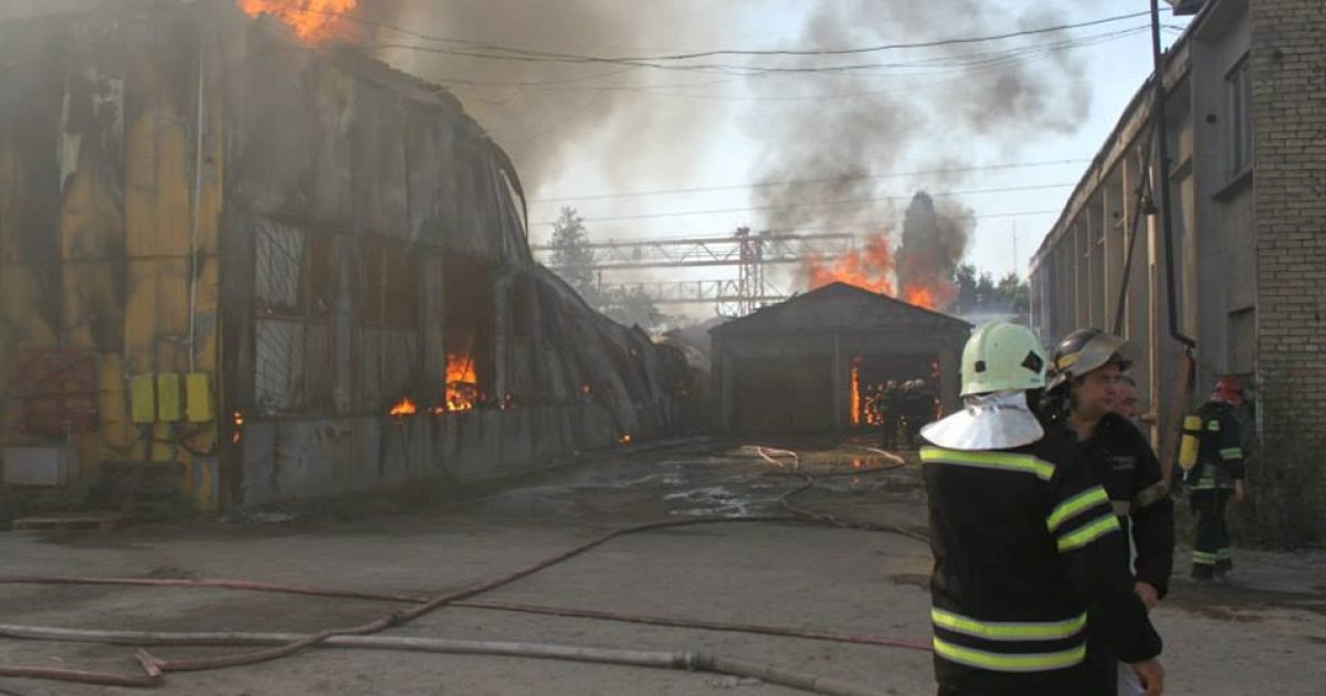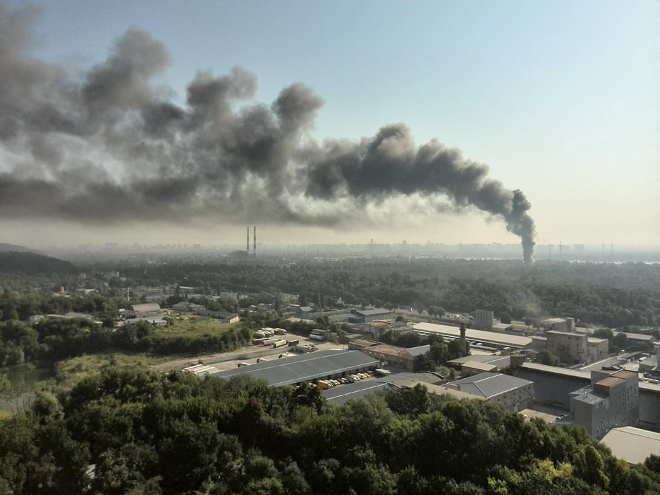 Пожар на Выдубичах: над промзоной "завис" столб черного дыма