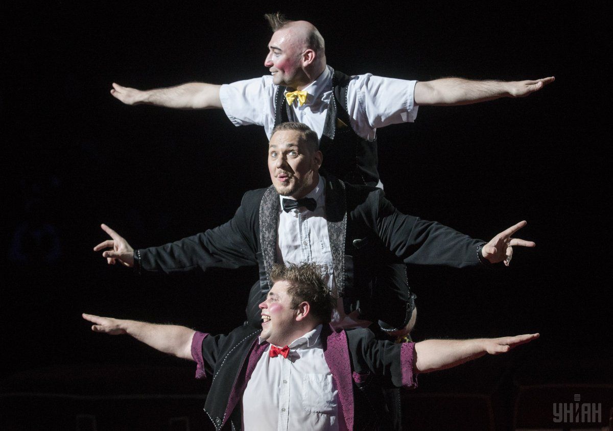 Выступление клоунов "Эки Воки" во время премьеры клоунской программы "Клоуны Forever!" в здании Национального цирка в Киеве. / © УНИАН
