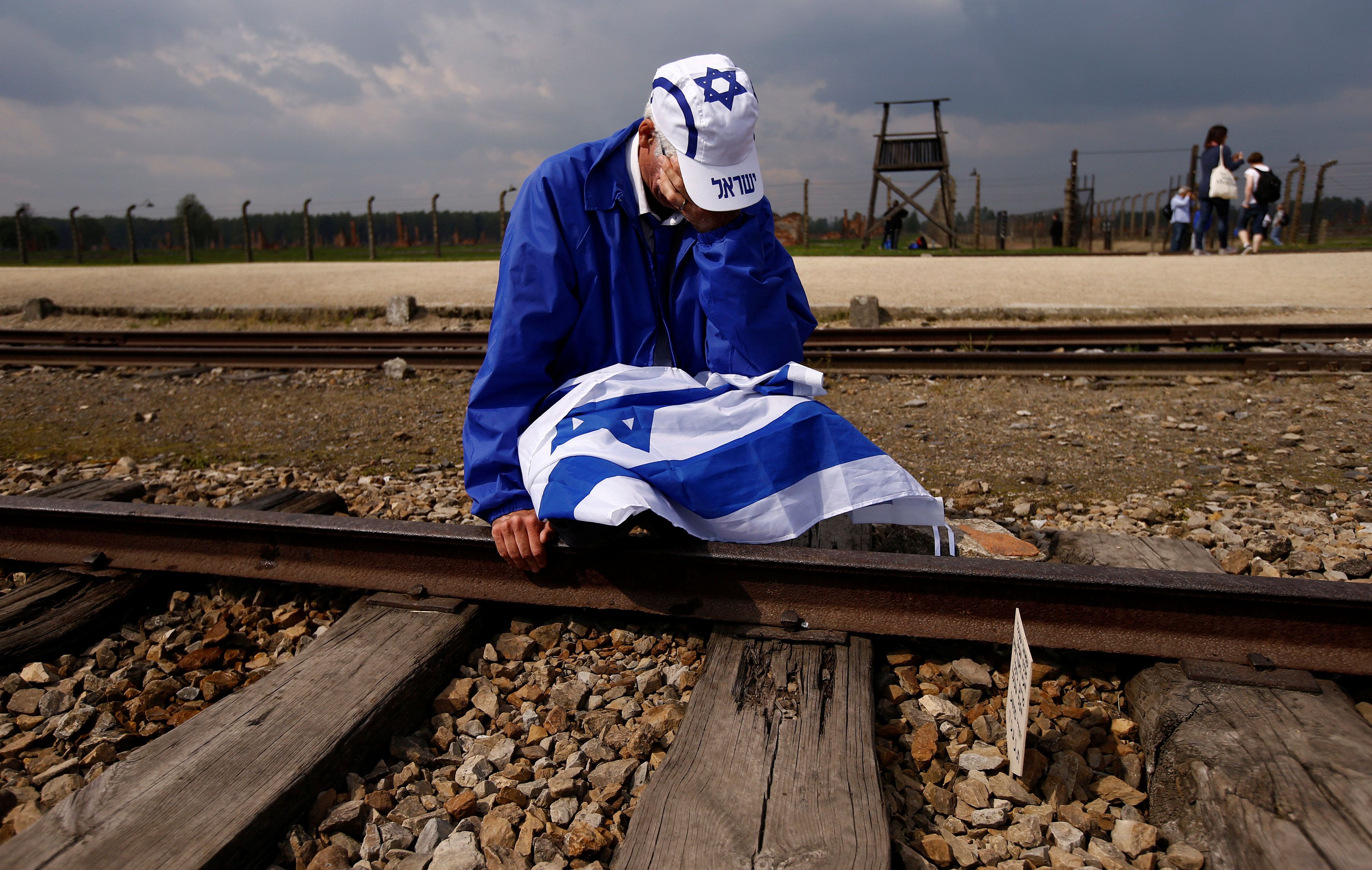 Мужчина плачет, сидя на железнодорожных путях в бывшем нацистском лагере смерти Освенцим-Биркенау, где тысячи людей со всего мира собрались на ежегодный "Марш живых", чтобы почтить память жертв Холокоста. / © Reuters