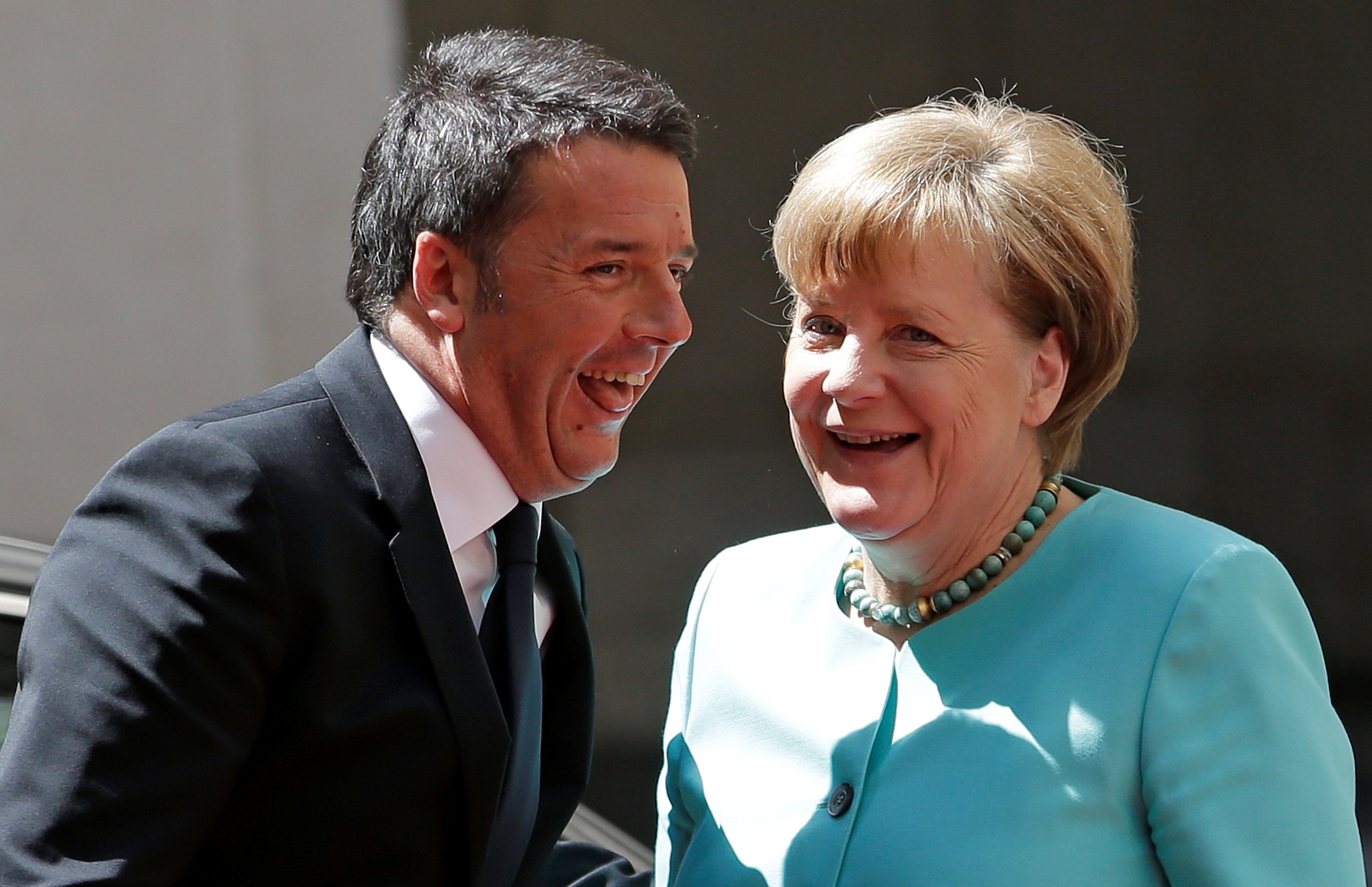 Премьер-министр Италии Маттео Ренци приветствует канцлера Германии Ангела Меркель во дворце Киджи в Риме. / © Reuters