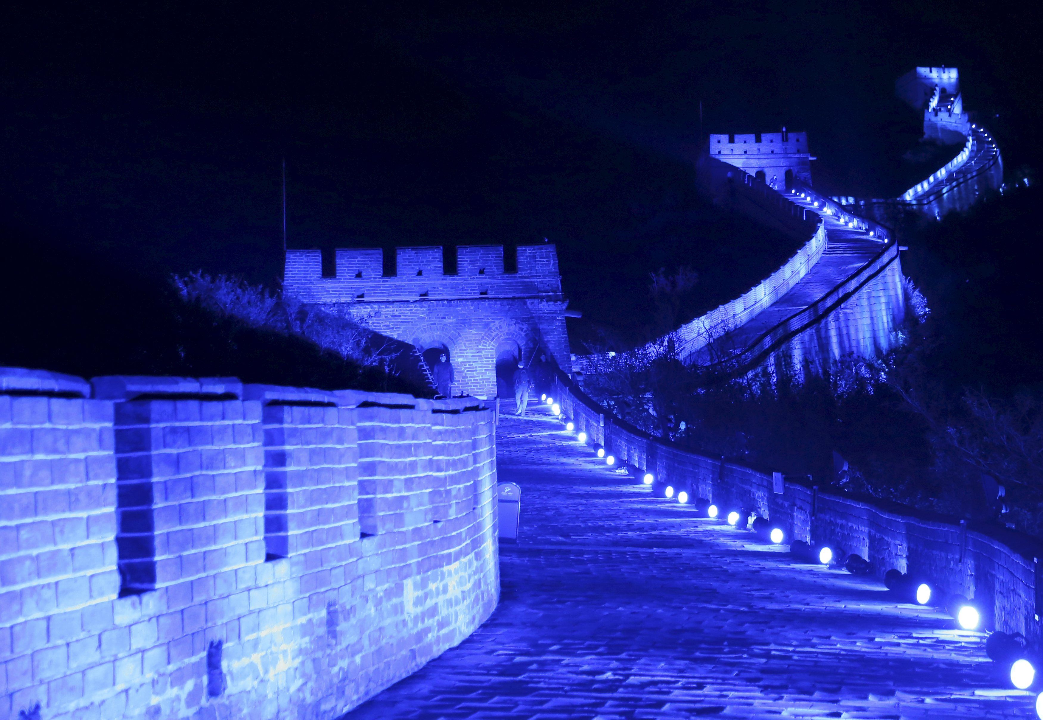 Великая Китайская стена светится синим. Таким образом отметили 70-летие Организации Объединенных Наций в Пекине, Китай. / © Reuters