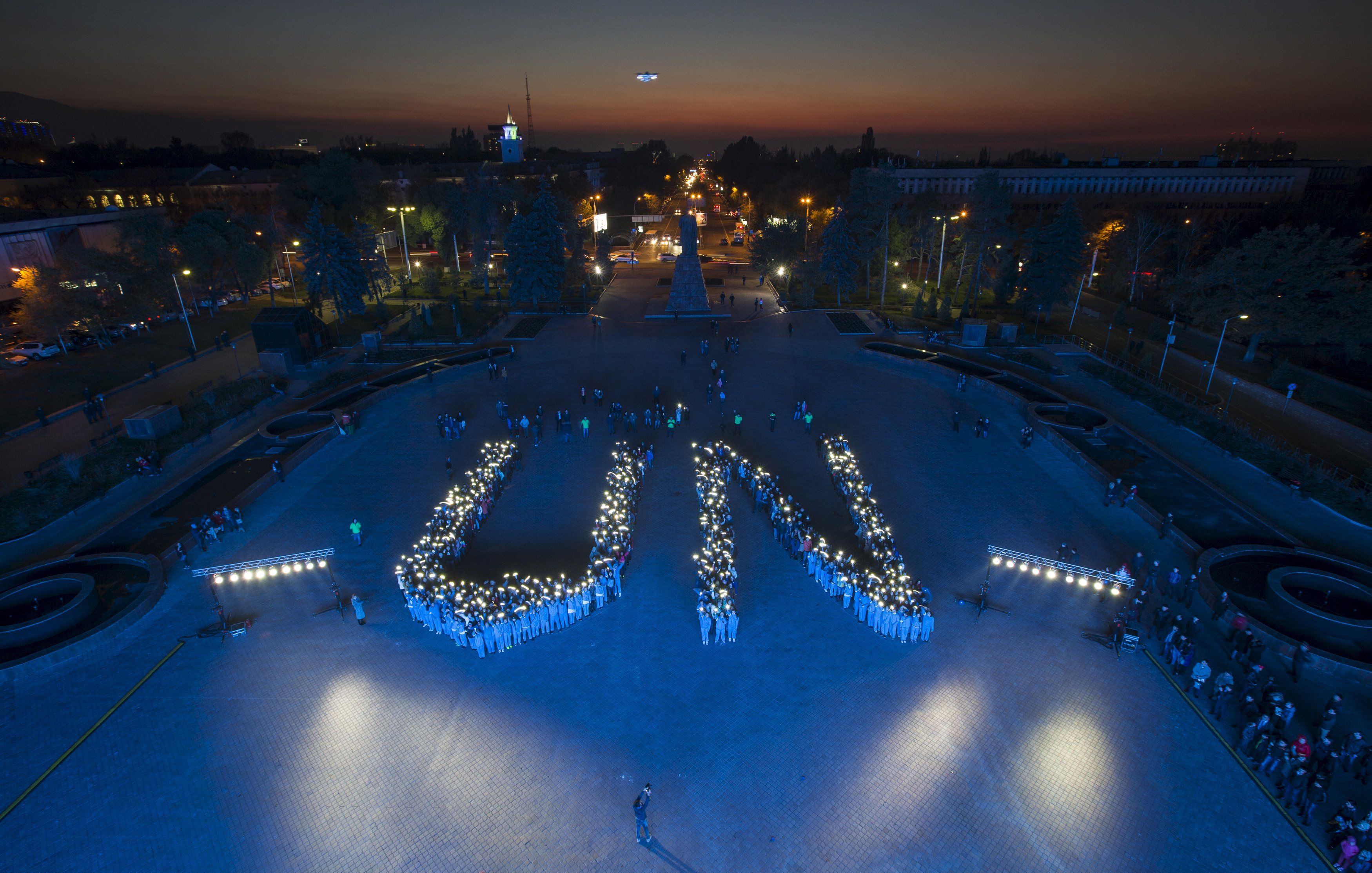 Студенты образуют знак ООН на митинге в честь 70-й годовщины Организации Объединенных Наций в Алматы, Казахстан. / © Reuters