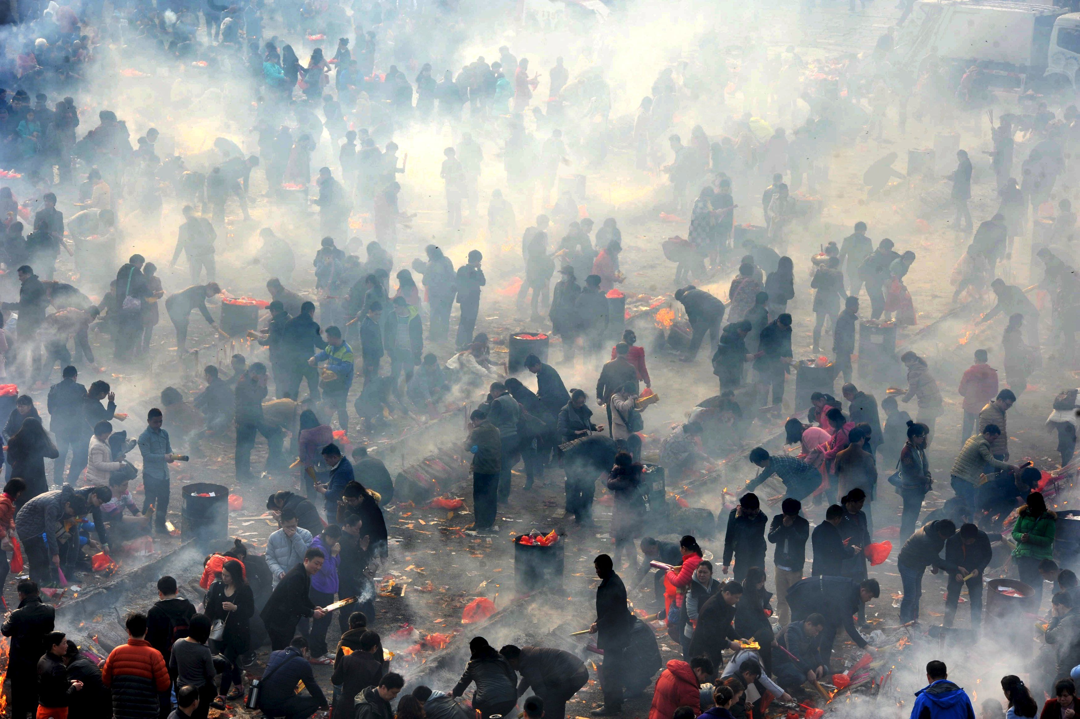 Люди поклоняются богу Фортуны на пятый день Китайского Нового года в Ухане, провинция Хубэй, Китай. / © Reuters