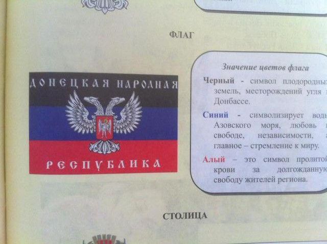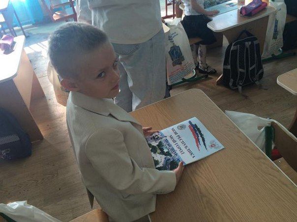 Кроме того, в "набор первоклассника" также входили пропагандистские листовки с гимном и флагом "ДНР".