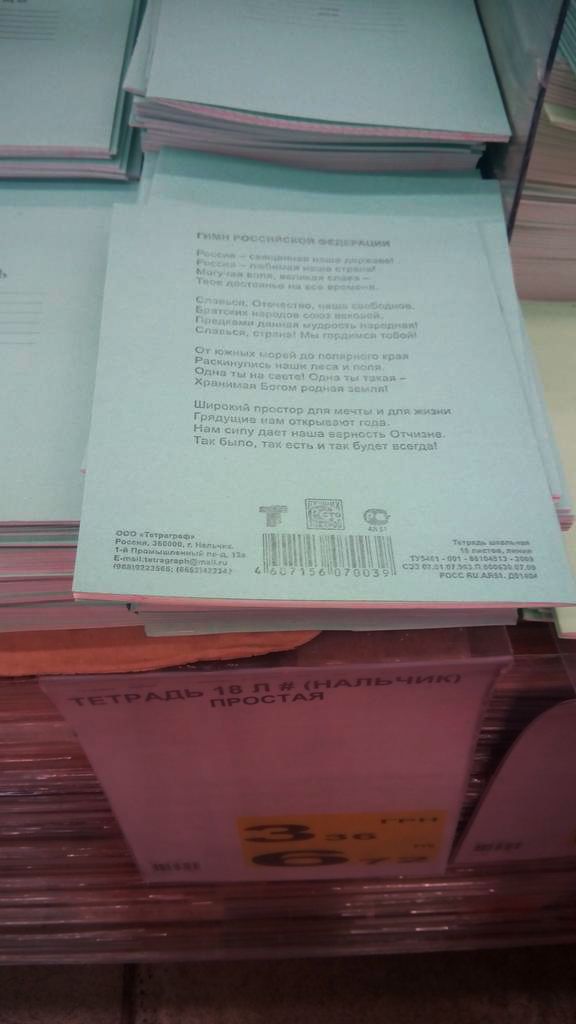 В Донецке продают тетради с гимном России / © Єдність.Інфо