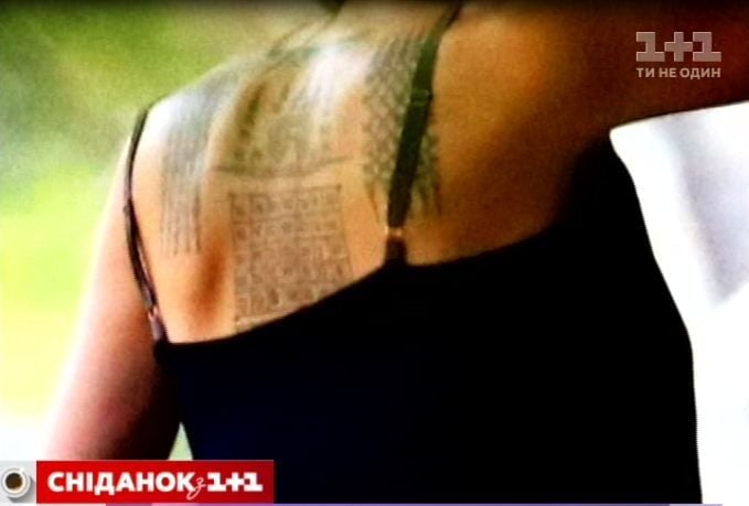 На спине звезды заметили сразу три новых надписи. Два из трех свежих рисунков на теле Джоли - древние буддийские символы, которые должны защищать от зла.