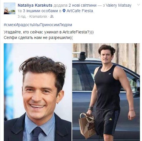 В частности, в Славянске актер побывал в школах, а в Краматорске ужинал в местном арт-кафе "Фиеста". И если школьники фотографировались с Блумом, то посетителям и персоналу кафе запретили делать с ним селфи.
