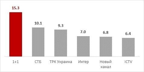 Напомним, показатели рассчитаны на основе предварительных данных. Данные исследования ТВ аудитории принадлежат ИТК, оператор панели – Nielsen, мониторинг – Коммуникационный Альянс. Данные предоставлены телеканалом 1+1. Показатели рассчитаны для целевой аудиторий 18-54 (Украина).